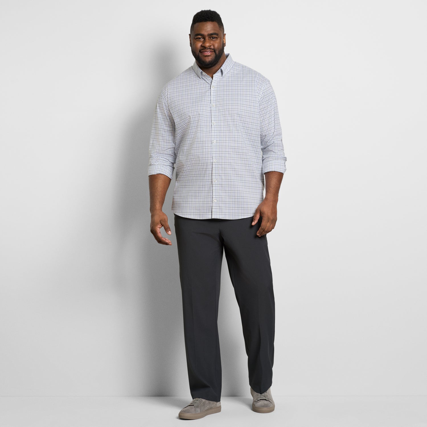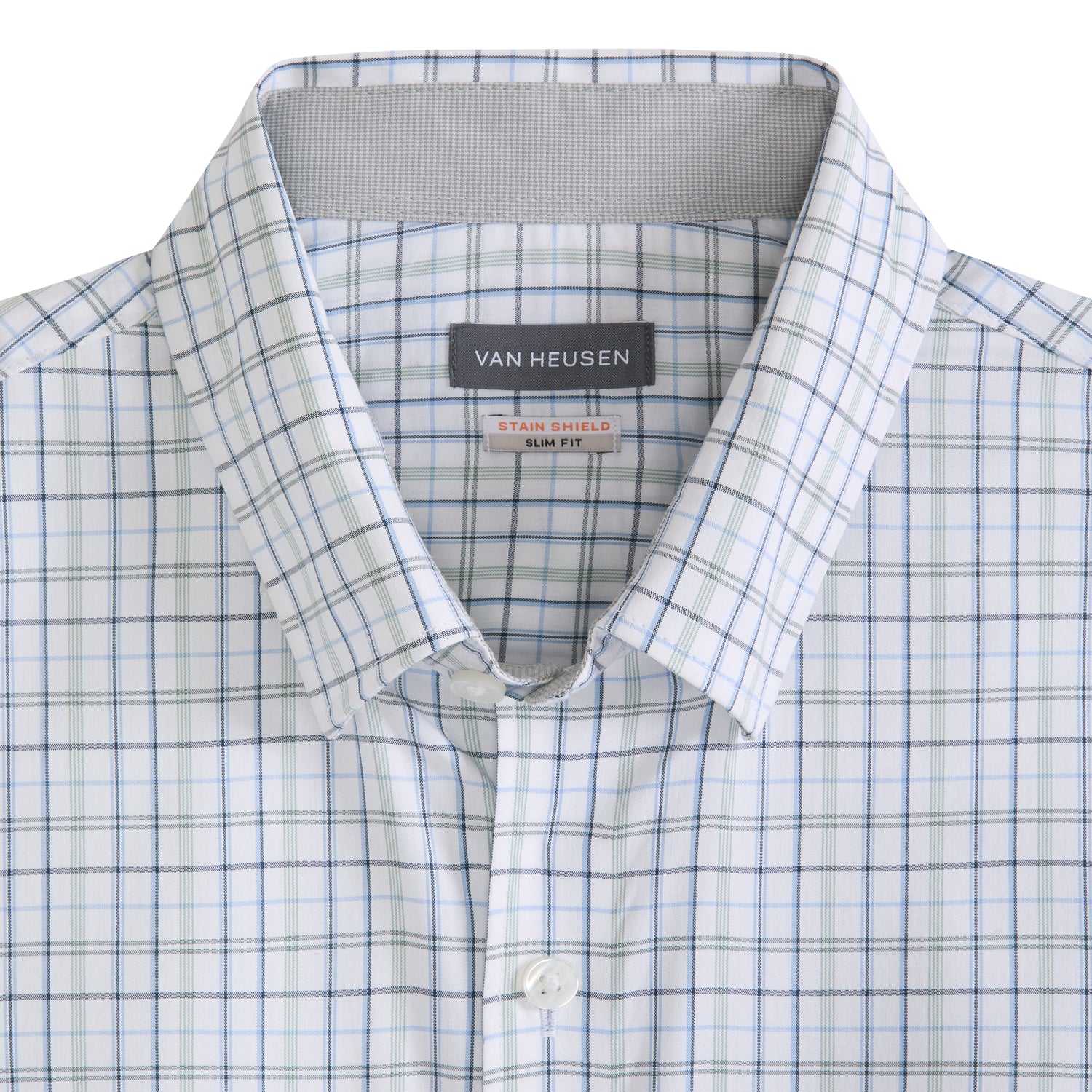 The Van Heusen Men's Everyday Defense Stain Shield Long Sleeve Shirt combines modern style with advanced functionality. Available in big & tall sizes, this shirt offers Stain Shield technology that blocks tough stains, it keeps you looking fresh and polished. The wrinkle-free design and stretch fabric offer comfort and flexibility, while the recycled polyester fabrication reflects a commitment to sustainability. With a never-tuck length and hidden button-down collar, this shirt is perfect for both professional and casual settings, providing style and practicality in one.
